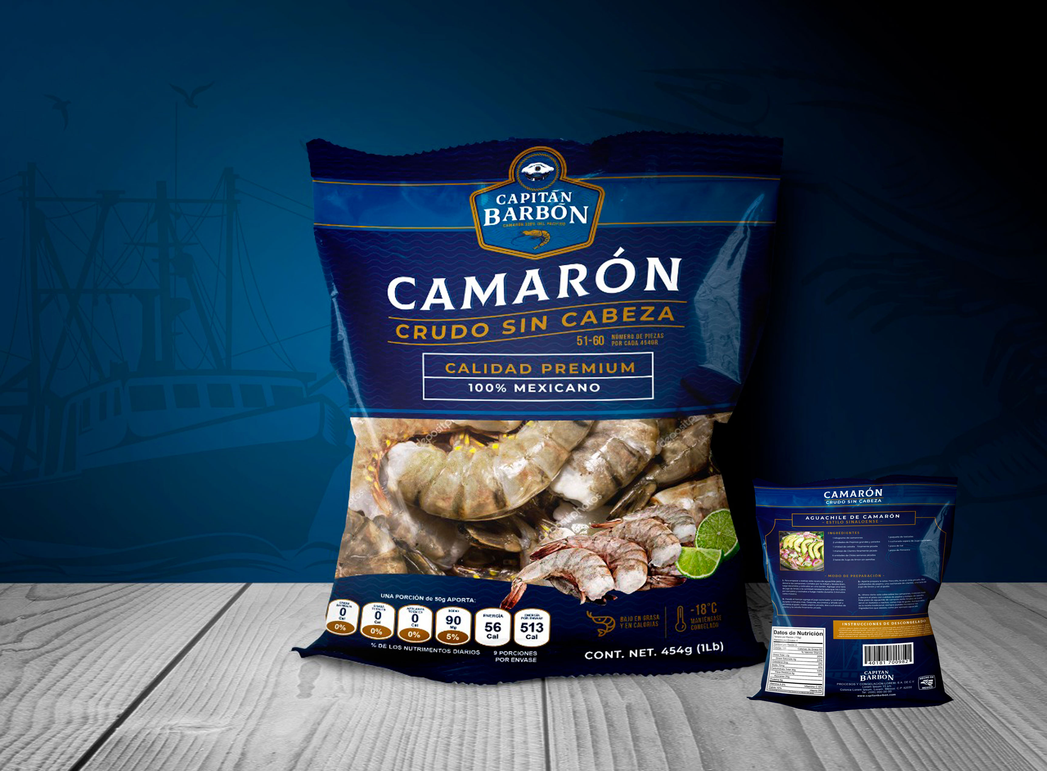 EL CAMARÓN CAPITÁN BARBÓN SE MAQUILA EN UNA DE LAS MEJORES PLANTAS DEL PAÍS, DONDE SE PRODUCEN LOS MASTER Y EMBOLSADOS QUE OFRECEMOS.